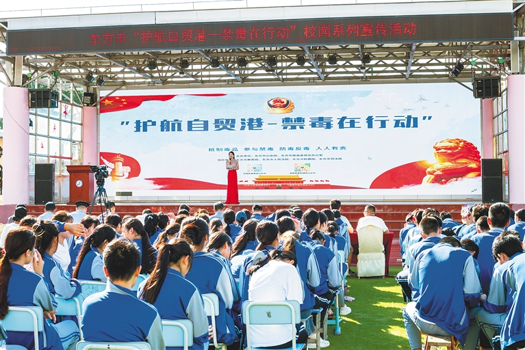 6月3日,东方在25所学校开展了“护航自贸港—禁毒我们在行动”主题日活动,通过播放电影《林则徐》,开展“禁毒干部讲禁毒”、禁毒志愿者等活动,掀起了禁毒宣传热潮。