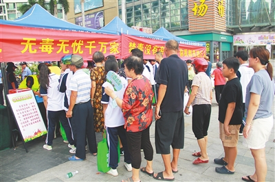 陵水坚持预防为先,推动禁毒宣传教育全覆盖,大力开展禁毒宣传预防教育工作,全面推动禁毒警示教育场所、设施、文化氛围的打造。各乡镇、成员单位积极开展“八进”禁毒宣传,将禁毒宣教工作社会化,构建全民参与的禁毒格局,在全县营造了全民积极参与禁毒工作的浓厚氛围。各单位、各部门深入开展系列宣传活动260余场次,发放各类禁毒宣传资料8万余份,不断提高在校青少年学生和广大群众识毒防毒和拒毒意识。