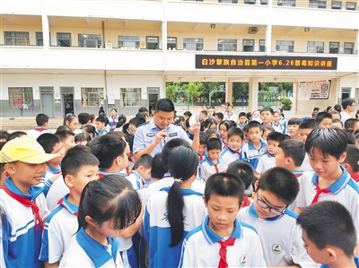 在创建“无毒县”的过程中,白沙充分发挥教育局、团县委、司法局、交通局等禁毒委员会成员单位的职能优势,联合各乡镇、街道、村居等做好禁毒宣传教育工作。白沙法院将庭审现场搬进学校,让师生代表旁听涉毒案件庭审。该县面向在校学生开展毒品预防教育,将毒品预防教育列为学生必修课。目前,白沙在校学生在全国青少年毒品预防教育数字化平台的注册率超过98%。