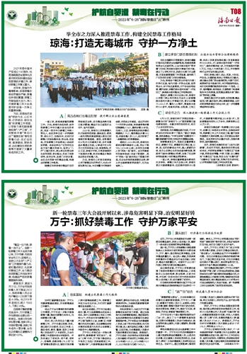 | 海南日报 护航自贸港 禁毒在行动 048 2021-06-281 2021年06月28日 星期一 |