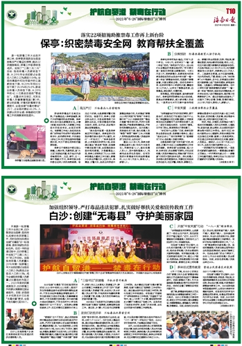 | 海南日报 护航自贸港 禁毒在行动 050 2021-06-281 2021年06月28日 星期一 |