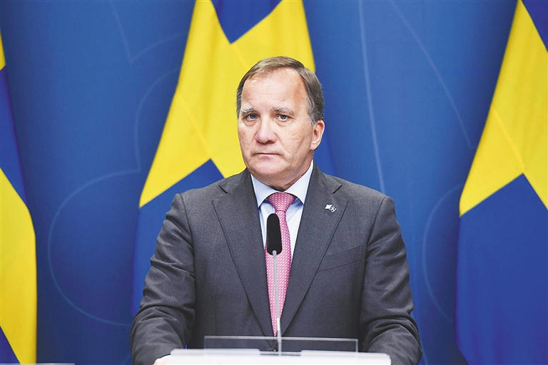 6月28日,瑞典首相勒文在瑞典斯德哥尔摩召开新闻发布会。