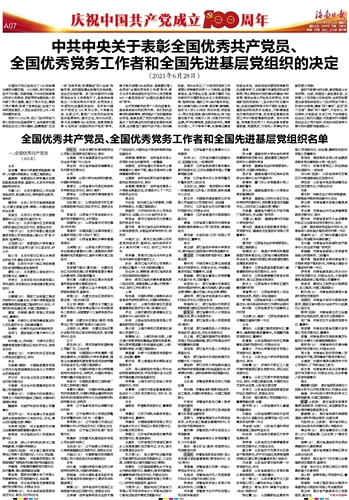 全国优秀共产党员、全国优秀党务工作者和全国先进基层党组织名单