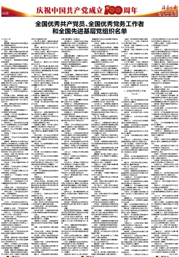 全国优秀共产党员、全国优秀党务工作者和全国先进基层党组织名单