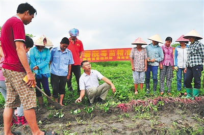 为了实现农业科研单位党组织与农村基层党组织建设的双向互动与协同发展,省农科院粮作所党支部派出人员多次深入海南多个村庄,在农家、田间地头开展主题党日活动。专家们俯下身来听困难,手把手教村民种植技术。
