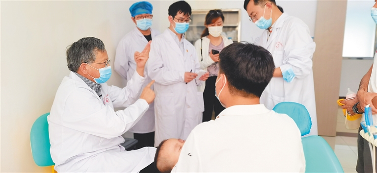 今年3月, 一位60多岁的患者脸部动静脉畸形,慕名到海南西部中心医院就诊。患者动静脉畸形范围从颞部、颅底区域,到达咽旁、颌下区域,血管全部扩张、增粗,手术稍有不慎,易引起严重心脑血管问题,甚至死亡。上海交通大学医学院附属第九人民医院的张志愿院士前来主持手术,把患者的肿瘤完整切除,修复患者颌面部,术后10天患者出院。这是海南首例术中栓塞配合的颅面巨大动静脉畸形外科根治术,填补海南医疗技术的空白,是上海九院帮扶海南西部中心医院、帮助建设海南西部医疗中心后出现的新面貌。