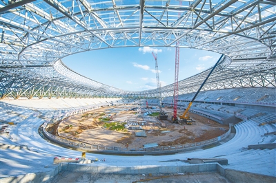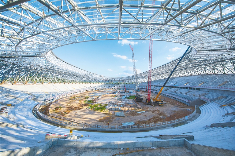 6月21日,在儋州市体育中心“一场两馆”项目施工现场看到,儋州市体育中心“一场两馆”主体建筑雏形初现,轮廓唯美。“我利用新技术解决设计和施工中的难题,推进项目优质履约服务,为海南自贸港建设添砖加瓦。”儋州体育中心项目党支部党员、工程师孙发理说。这一项目将是第六届海南省运动会主场馆,2019年开工建设以来备受关注。施工方中建一局相关负责人邢月宇说,体育场、体育馆、游泳馆主体结构已封顶,完成总工程量的70%。将抢抓工程进度,确保高标准、高质量完成场馆设施建设任务。