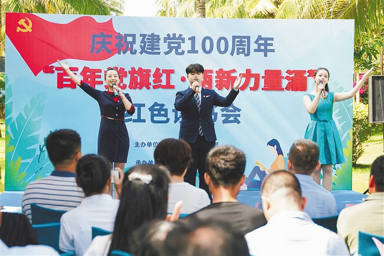 一场场生动精彩的宣讲,走进机关、农村、社区、企业、工地、校园、田间地头,面对不同受众群体,线上线下相结合进行宣讲,推动党史学习教育在琼海掀起高潮。