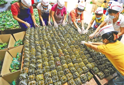 “供不应求!”今年端午节,定安粽子呈现出加速“进击”之势。从去年端午结束至今年6月14日,定安全县粽子销量达3220万个,总产值4.83亿元,产值与销量均较去年同期增长11%。