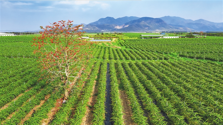 紧紧围绕绿色发展,东方市以推进国家农业绿色发展先行区为抓手,大力实施乡村产业发展行动,坚持规模化、标准化、品牌化,推进农业产业转型升级,让农民群众在农业农村现代化中有更多的获得感、幸福感。大力推进农业规模化、推进农业标准化,推进农业品牌化建设。引进、培育了一批农业龙头企业,通过土地流转,吸纳扶贫资金,采取“劳务收益+承包经营+收益分红”的发展模式,探索创新承包务工的新模式,帮助众多脱贫户有固定工资性收入。