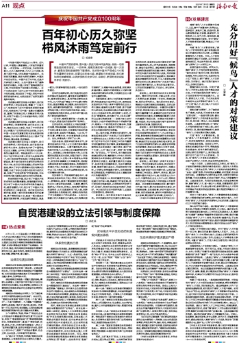 | 海南日报 观点 011 2021-07-011 2021年07月01日 星期四 |