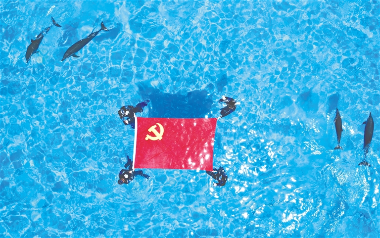 6月28日,为庆祝中国共产党成立100周年,三亚海昌梦幻海洋不夜城在园内潜水馆、海豚湾举办“庆百年海洋礼赞”水下摄影活动,为党的百年华诞献上美好祝福。 本报记者 武威 通讯员 王媛媛 图/文