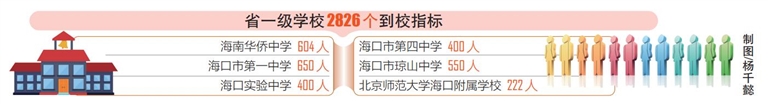 据悉,为促进义务教育均衡发展,今年海口的省一级学校指标到校计划占本校招生总计划的比例为50%。招录对象为填报了招生学校志愿,且初中阶段均在其初中毕业学校就读,并参加了学业水平考试的应届初中毕业生。