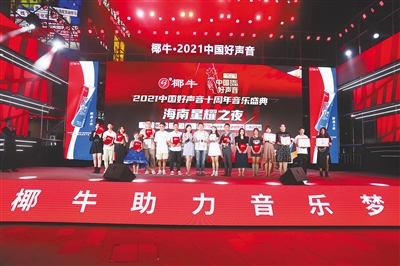 “太好听了,这位歌手年纪不大,但嗓音条件非常好。”被坐在观众席的海口市民符艳称赞的歌手是来自儋州的潘智彬。当晚,16岁的他用纯净的嗓音演唱了一首《囚鸟》,俘获了不少观众的心。“这里是2021‘中国好声音’十周年音乐盛典(海南)‘星耀之夜’的现场,各位网友赶快来听。”活动现场不仅吸引了众多观众赶来听音乐,还吸引了不少自媒体达人来到现场为喜爱的歌手助力,他们通过各自的自媒体平台邀请亲朋好友到场观赏音乐盛宴。“民族音乐非常好听,参加这个活动让我感受到,海南的文化产业很有发展潜力。”海口市民王博说,歌手演唱的歌曲类型多样,音乐盛典不仅为歌手提供了实现梦想的舞台,也丰富了市民的精神文化生活。