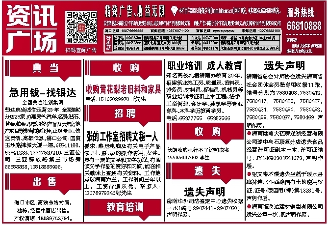 银达典当诚信经营23年,全国连锁分店25家,办理房产、汽车、名表、钻石、黄金、铂金、股票、数码产品及大宗房地产项目等典当贷款业务。正规专业、快速灵活、高额低息。海口公司:国贸玉沙路椰城大厦一层。68541188、68541288、13307529219。三亚公司:三亚解放路第三市场旁 88558868,13518885998。