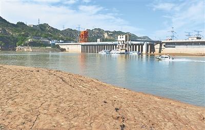 近期,位于黄河上游甘肃省永靖县境内的刘家峡水库按照黄河防总要求,加大下泄流量,调低水库水位,为汛期腾出更多库容,确保黄河流域安全度汛。图为7月4日拍摄的低水位运行的甘肃刘家峡水电站。 新华社发(史有东 摄)