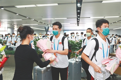 庞大的演员队伍中,一个“百人男团”十分引人注目——他们年轻,是唯一以中学生为主的代表队;他们拼搏,用百余天、千万次苦练确保了正式演出的“零差错”。