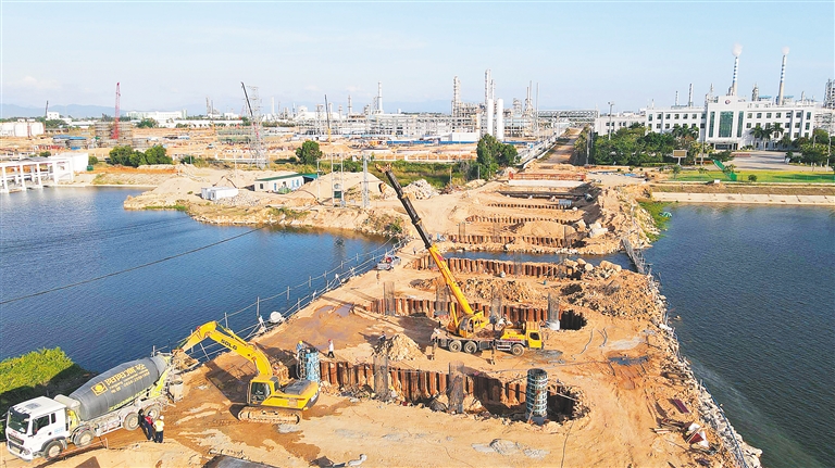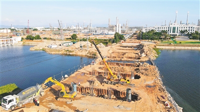 近日,在东方临港产业园,一座桥梁正在抓紧建设,建成后将改善园区路网状况。该产业园正推动油气化工、精细化工、新材料、海洋装备制造等产业加速集聚发展。