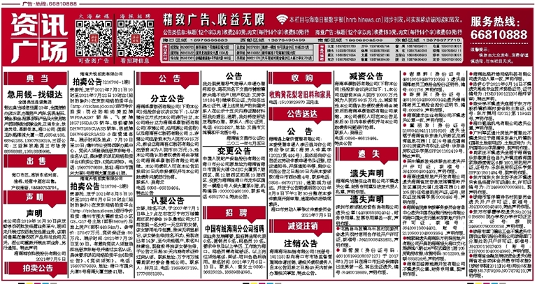 因业务发展需要,现招聘坐席代表6名、营销员5名、网格员10名。要求中专及以上学历,工作地为海口。网格员需有驾驶证。以上岗位须经笔试、面试、培训合格后录用。报名时间:2021年7月6日-13日。联系人:曾女士0898-36625023、18689884098。