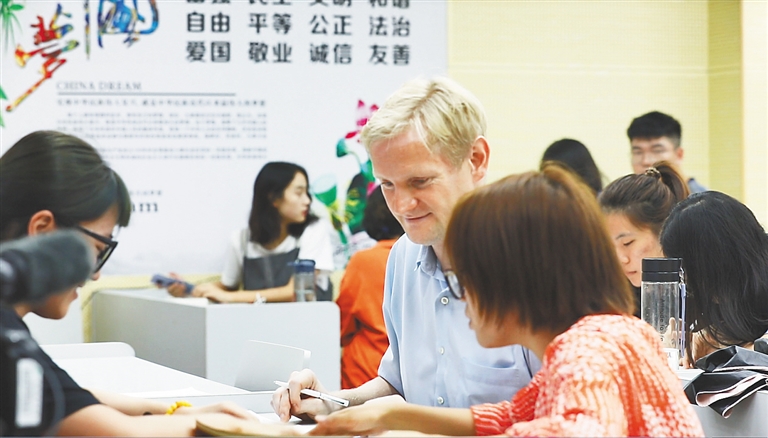 为了突破语言关,同学们充分利用早晚自习、课余时间、与外教沟通的机会提升自己的口语表达能力。今年毕业的海南师范大学中俄编导专业学生陆冰钊说:“刚开始跟俄语老师沟通压力很大,通过努力学习,现在能顺畅交流,成就感满满的。”