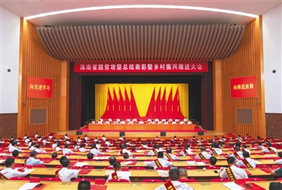 会议传达学习全国乡村振兴系统建设和工作推进电视电话会议精神,宣读《中共海南省委 海南省人民政府关于表彰海南省脱贫攻坚先进集体和先进个人的决定》《中共海南省委关于表彰海南省脱贫攻坚先进基层党组织和优秀共产党员的决定》,授予299个集体“海南省脱贫攻坚先进集体”称号、50个集体“海南省脱贫攻坚先进基层党组织”称号、392名同志“海南省脱贫攻坚先进个人”称号、99名同志“海南省脱贫攻坚优秀共产党员”称号。