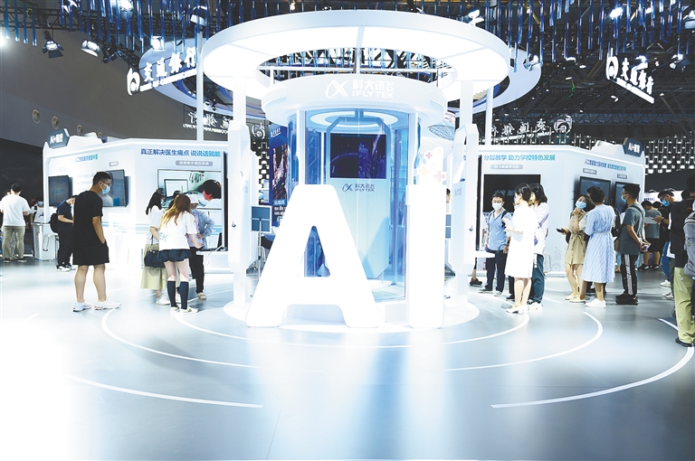 图为观众在2021世界人工智能大会参观。 新华社发(胡智轩摄)