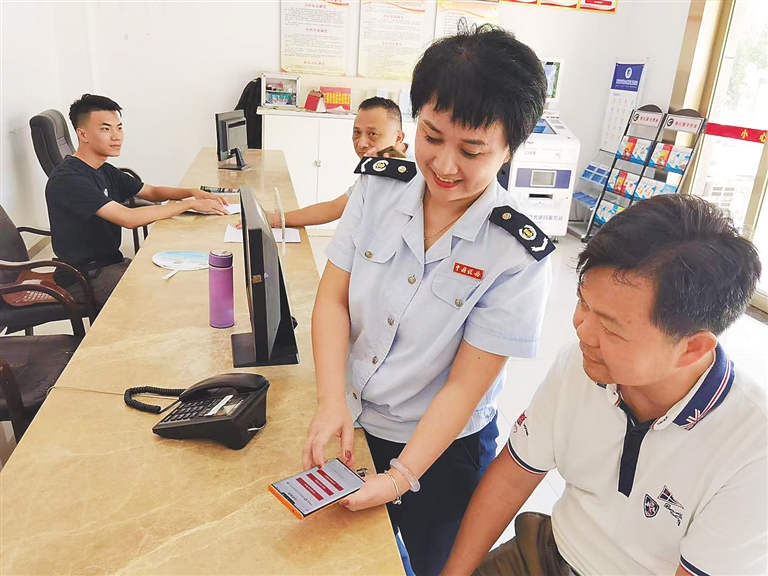7月6日,家住澄迈县永发镇永灵村的林阿公和老伴来到永发镇便民服务中心社保费代征点,不到5分钟便办完了社保缴纳业务,“省时又省心”。