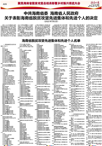 第007版:聚焦海南省脱贫攻坚总结表彰暨乡村振兴推进大会