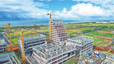 7月8日,海口金融中心项目进入幕墙安装阶段,预计在明年1月可实现项目整体竣工。该项目总投资15亿元,总占地面积超2万平方米,总建筑面积79752.01平方米。今年4月,项目主体结构全面封顶,整体幕墙安装工程预计在10月底前完成。图/本报记者 封烁 文/本报记者 张期望
