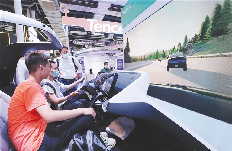 ——AI+生活,让生活更便捷。在世博源旁的“AI赛道”,2021年世界人工智能大会自动驾驶应用体验有序开展。由小马智行和商汤科技两家企业提供的自动驾驶车辆,沿着总长2.8公里的体验路线行驶,途经12个路口。驾驶中,安全员双手离开方向盘,把行驶重任交给了人工智能系统。
