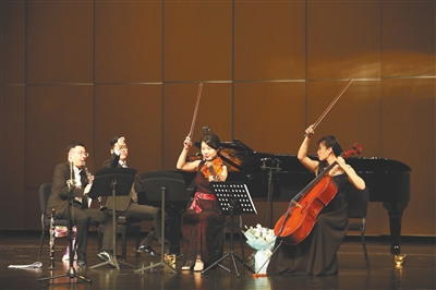 值得一提的是,此次音乐会上演奏的《藏乐二首》,问世后的首演正是由海上丝路室内乐团完成。董雪介绍,这部作品没有使用任何藏族乐器,仅通过传统西方乐器的演绎就能呈现出藏乐的精髓。该曲目的演奏在当晚给不少听众也留下了深刻的印象。而对于成员们而言,能在舞台上向更多人展示这首曲子的魅力也颇有意义。