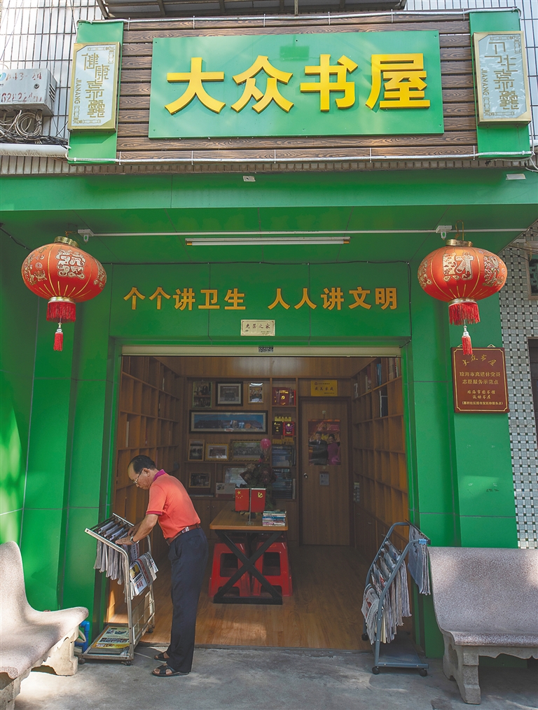 “在这里读书看报,已经成为我的习惯。”琼海市嘉积镇居民王智兴像往常一样来到大众书屋,他的阅读从当天的报纸开始。一旁,一位白发苍苍的老人拿着抹布擦桌子,等待着更多读者到来。