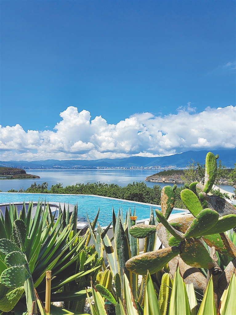 白色纯净,大地色深邃,建筑的轮廓富有艺术气息。来到“圣托里尼”的“山顶”,与远处苍山为伴的无边泳池引游人驻足拍照,用一步一景来形容这里并不为过,设计者对区域之间的无缝对接和丰富的空间转换,正是大理“圣托里尼”的魅力所在。