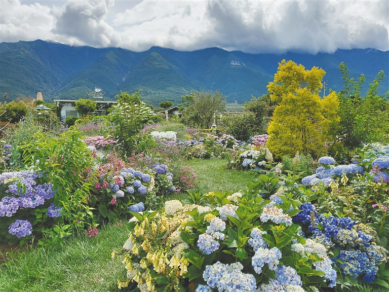 步行几十米,看到了上百种花,除了各色的绣球、月季,还有许多是叫不出名字的。颜色艳丽的花与淡雅的花交错在一起也很协调,它们看似没有被刻意安排,自由地生长着。