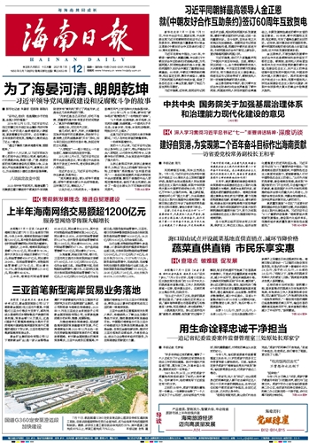 | 海南日报 头版 001 2021-07-121 2021年07月12日 星期一 |