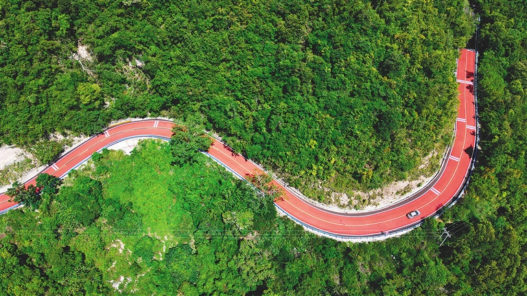 近日,俯瞰改造后的国道G361什邦线(什运至邦溪段)鹦哥岭路段,公路在大山里蜿蜒,美不胜收。如今,该公路已成为承担海南东西线连通的重要区域性干线公路。本报记者 陈元才 摄