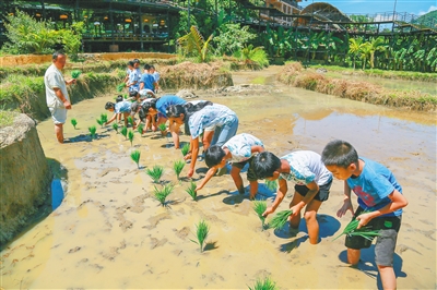 作为亲子旅游热门目的地的三亚,自然也不甘示弱。6月,三亚市旅游推广局推出“童趣三亚·全家登岛”这一面向亲子、研学旅行市场、家庭带娃出游这一极具潜力客群的全新推广主题,并邀请童星小旦仔-乔梓童家庭等五组总粉丝量达2161万的明星家庭打卡亲子酒店、景区、营地、美丽乡村、热带海岛的最新玩法以及水稻公园、热带雨林里的奇妙知识,体验研学旅行资源,掀起海岛研学热潮。