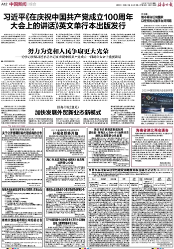 第004版:关注海南自由贸易港建设项目2021年度第四批集中开工