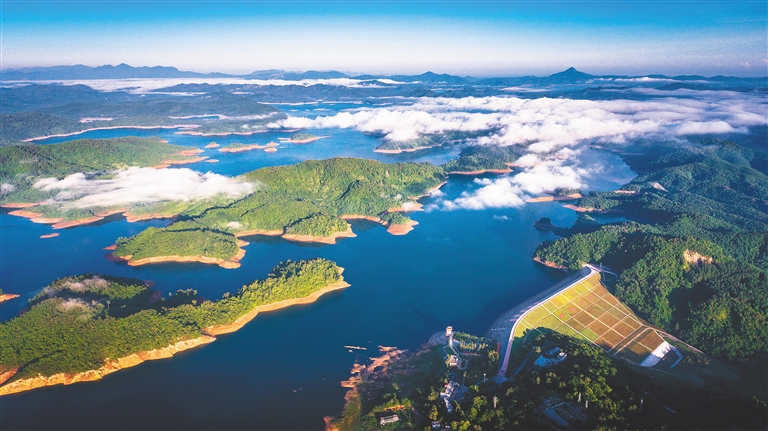 7月14日,俯瞰松涛水库天湖云海。近年来,松涛水库不断完善库区基础设施,目前水库大坝除险加固工程已通过验收,迎接汛期来临。特约记者 吴文生 摄