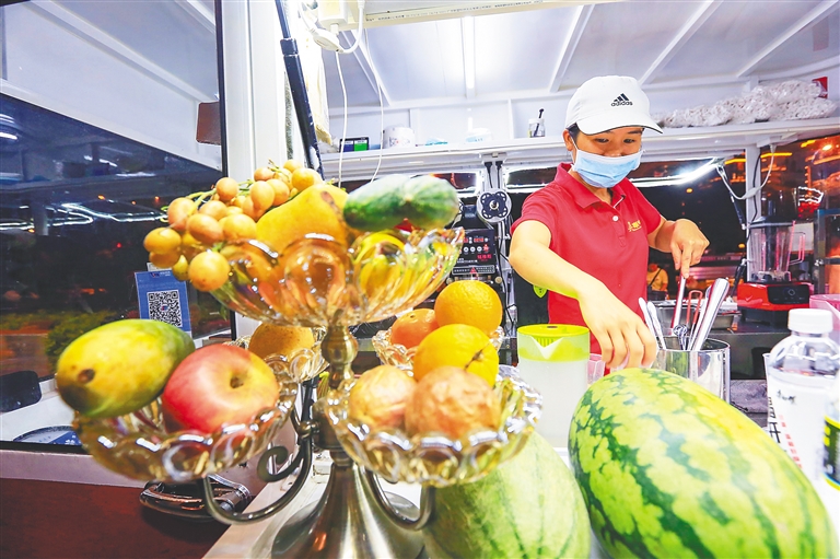 近日,在临高县文澜文化公园文澜夜市,商家正在忙碌。据悉,临高打造文澜夜市一条街,在满足市民多元化消费需求的同时,创造多个就业岗位。本报记者 陈元才 摄