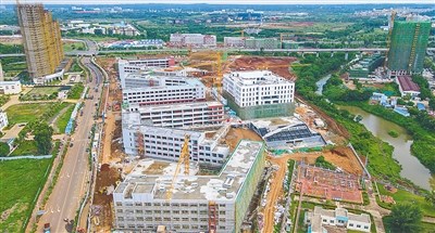 海南中学美伦校区项目总建筑面积14.76万平方米,将建成一所公办完全中学,设初中部、高中部和国际部。本报记者 陈元才 摄