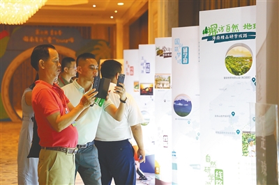在“书架·珠崖”篇章,主办方设置了非遗文化、海洋文化、热带雨林、航天航空4个主题,以实景美图充分展示了海南研学旅游产业得天独厚的一面。在“行走·琼岛”篇章,主办方通过10幅手绘图,直观地将琼岛研学旅游资源脉络展示给观展者,将海南的自然、海洋、非遗民俗、航天航空、美食等特色研学线路串联起来,全景式呈现海南的研学旅游产品。