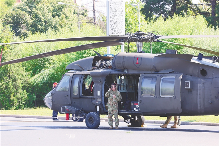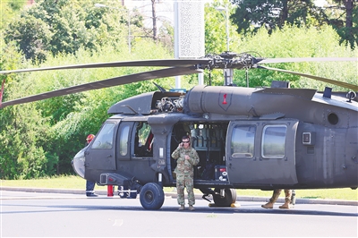 一架美军“黑鹰”直升机15日在罗马尼亚首都布加勒斯特市戴高乐广场紧急降落,导致两辆汽车受损,所幸没有造成人员受伤。