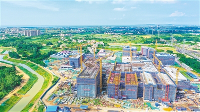 近日,俯瞰位于海口市椰海大道延长线的海南省中医院新院区项目施工现场。截至目前,该项目行政后勤楼、科研楼、名医堂、职业病医院等均已封顶,累计完成投资10.9亿余元,投资完成率达60%。