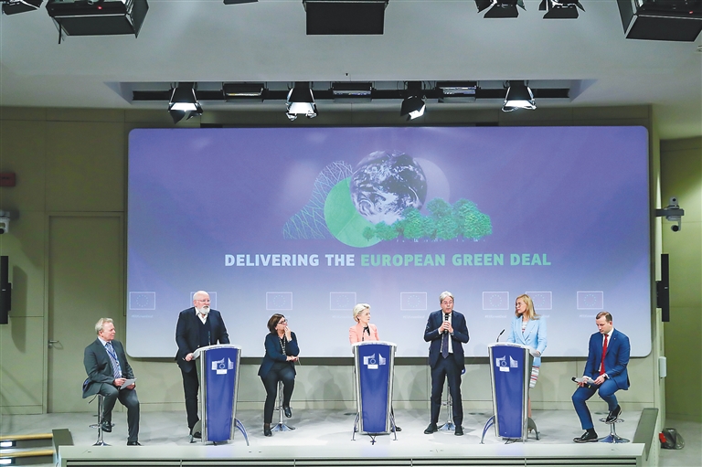 7月14日,欧盟委员会提出应对气候变化的一揽子计划提案,为2050年实现碳中和规划了路径。然而,这份提案还需经过欧洲议会和欧盟理事会讨论通过才能付诸实施,由于涉及较大利益分配,未来可能面临复杂的博弈。 新华社记者 张铖 摄