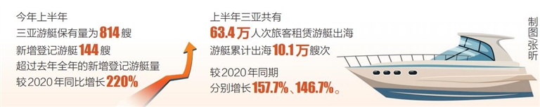 近年来,三亚不断丰富游艇出海游产品和水上项目,游艇旅游成三亚新的旅游消费热点。旅客出海游玩方面,上半年三亚共有63.4万人次旅客租赁游艇出海,游艇累计出海10.1万艘次,较2020年同期分别增长157.7%、146.7%。
