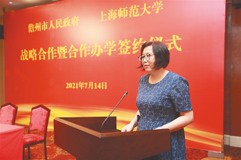 儋州素有尊师重教的优良传统,始终把教育摆在优先发展战略位置,作为各项事业的“先手棋”来抓。校地携手,势必为儋州深化教育改革创新,注入更强劲的力量。这是儋州落实省委推进“一市(县)两校一园”部署,引入国内优质教育资源,推动教育高质量发展,满足群众对优质教育需求的一项重大举措。儋州市委副书记、市长邹广说:“创造有利条件,采取有效措施,全力推动项目又快又好建设、尽早落地见效,让上海师大名校火种在儋州教育绽放光芒,让合作项目早日结出硕果。”