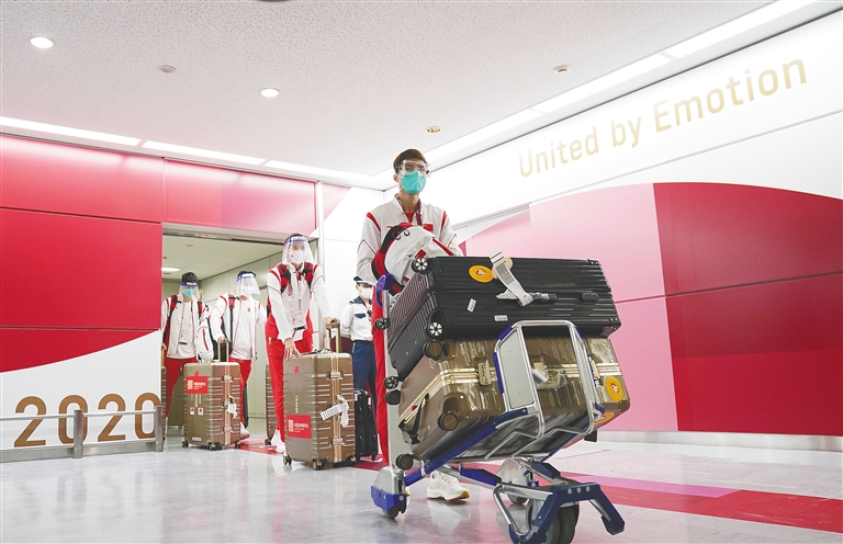 17日晚7时许,中国赛艇队、乒乓球队、射箭队、女足四支队伍从成田机场出口走出。