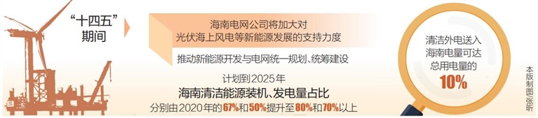 在此基础上,海南电网公司提出在“十四五”期间,将全面承接《南方电网公司服务碳达峰、碳中和工作方案》,融入与服务海南实现碳达峰、碳中和目标,加大对光伏、海上风电等新能源发展的支持力度,推动新能源开发与电网统一规划、统筹建设,计划到2025年,海南清洁能源装机、发电量占比将分别由2020年的67%和50%提升至80%和70%以上,清洁外电送入海南电量可达到总用电量的10%。