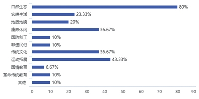 1.基本情况:基地近5年发展迅速。参调基地中80%以自然生态资源为依托,形成以自然教育为核心,其次带有运动拓展、传统文化、康养休闲等类型的主题课程。